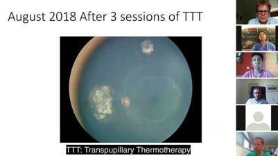 A discussion about the case and the variations in treatment around the world ensued. Ashwin Reddy commented that generally he would only use TTT if there was a relapse after six cycles of chemo, but in this case he might have been more aggressive as it was the only eye. In Toronto they do TTT after every cycle of chemotherapy, so there is variation around the world. In London, if there is a big relapse that TTT can’t control they have the opportunity to use intra-arterial chemotherapy (IAC), but there is increased risk of vitreous haemorrhage if TTT has been done before. They would do more than six cycles of chemo before using IAC, but as this is the only eye there is the risk of visual loss after IAC.
