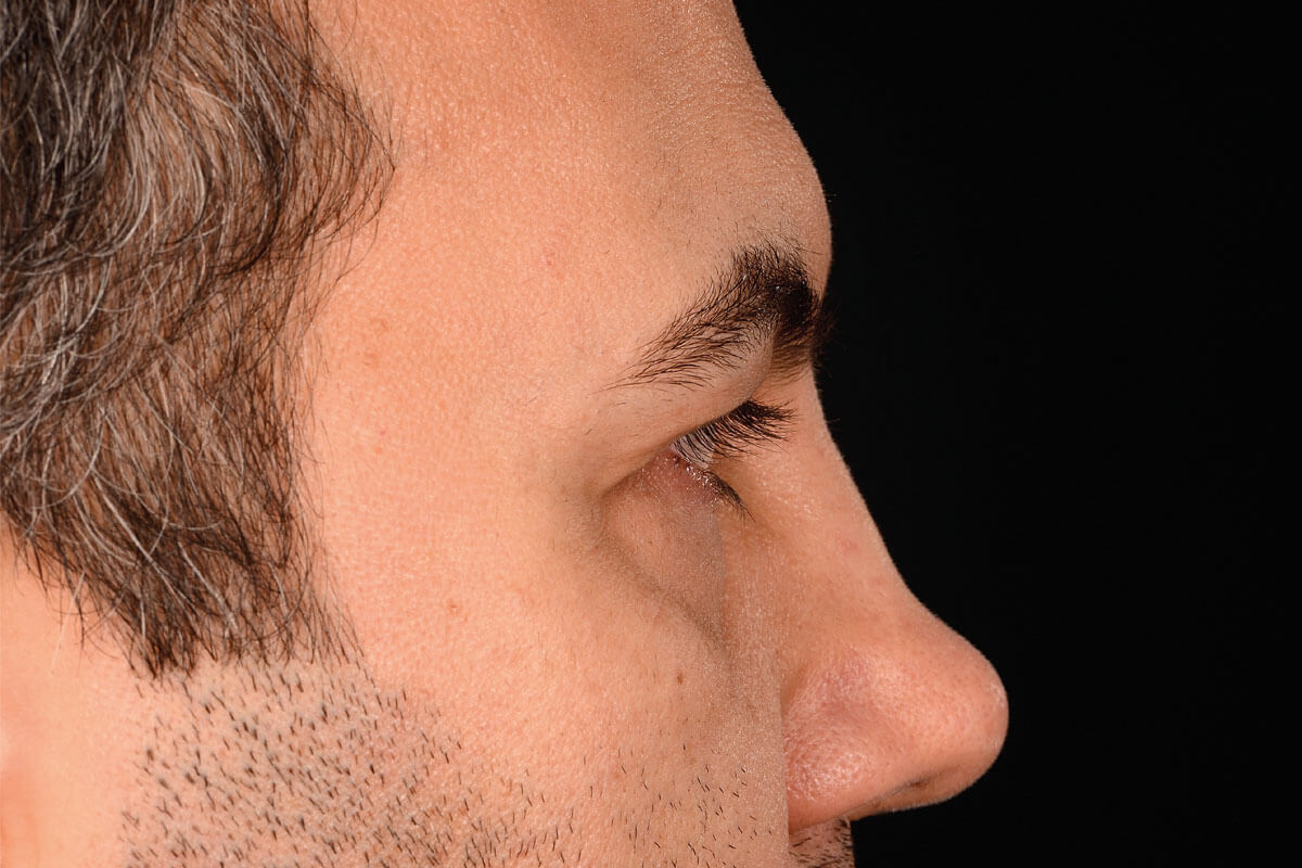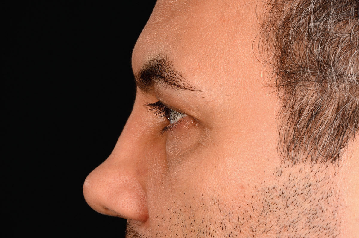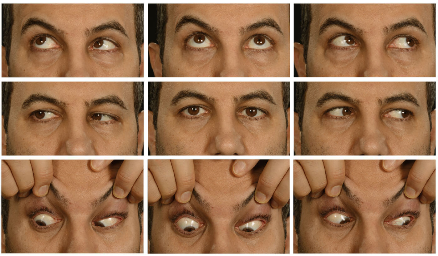 One month later: A constant esotropia of the left eye remains in which he has slightly more reduced vision (due to a mild uncorrected refractive error). Minimal limitation of abduction in the right eye with an increased esotropia on right gaze. PCT unaided at near was 25 dioptres base out, and 35 dioptres base out on distance fixation. PCT on right gaze was 25 dioptres base out and 20 dioptres on left gaze. On direct elevation PCT was 15 dioptres base out and on direct depression 30 dioptres base out. The patient was able to maintain single vision till approximately 36cm and was still alternately occluding his eyes.