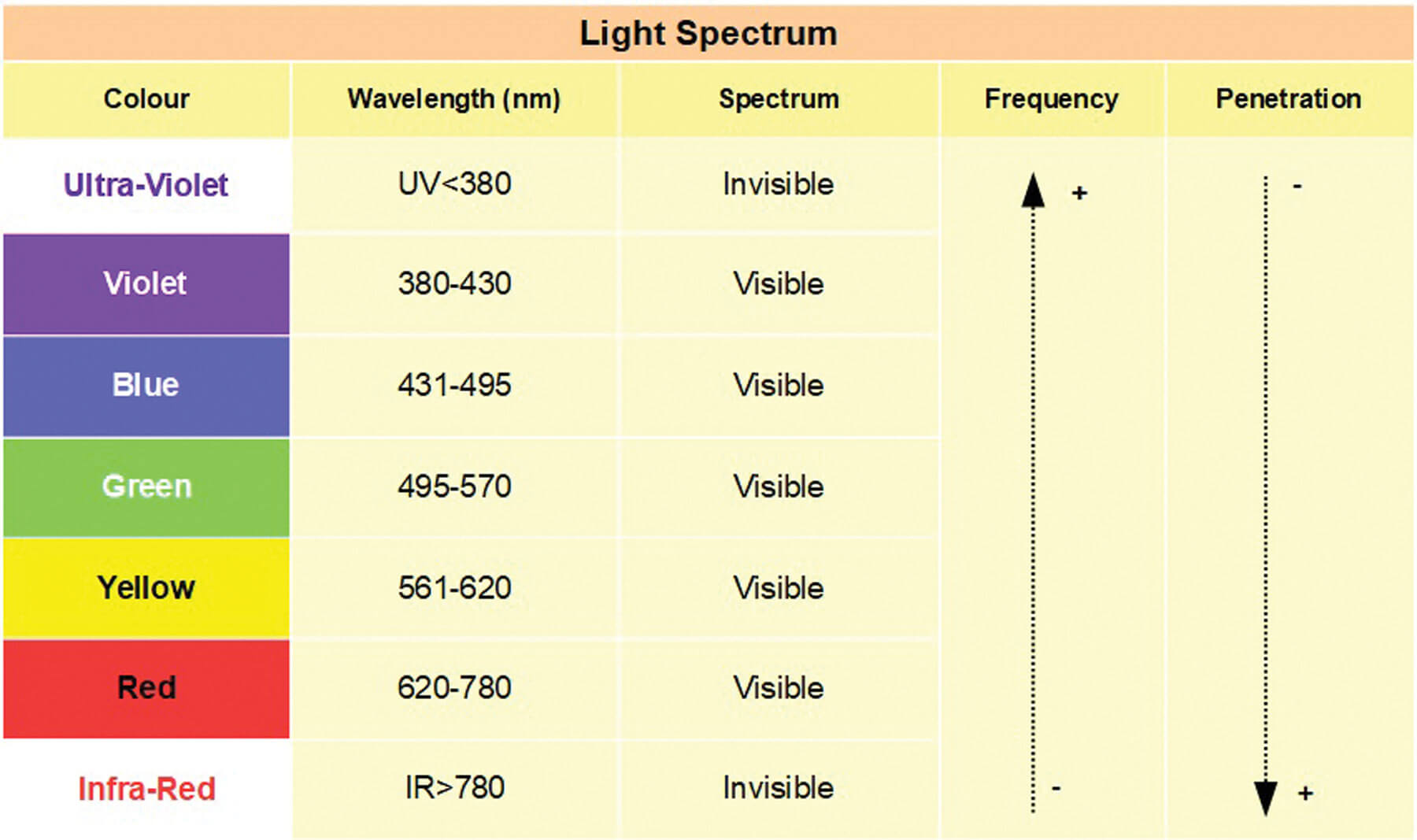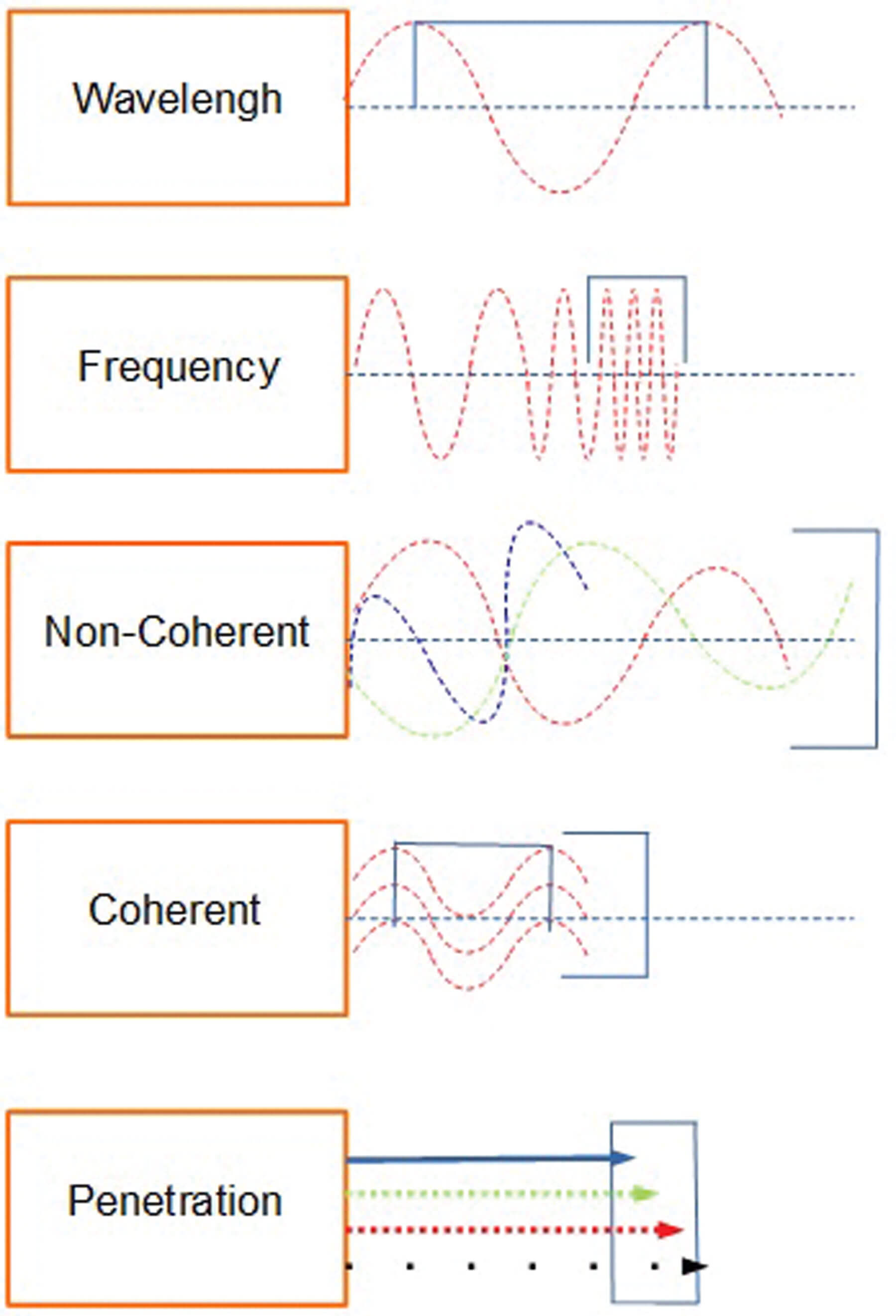 Figure 2: Representative diagram of wavelength, frequency, coherence, penetration.