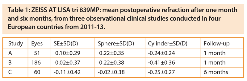 1. Mojzis P, Peña-García P, Liehneova I, et al. Outcomes of a new diffractive trifocal intraocular lens. J Cataract Refract Surg 2014;40(1):60-9.