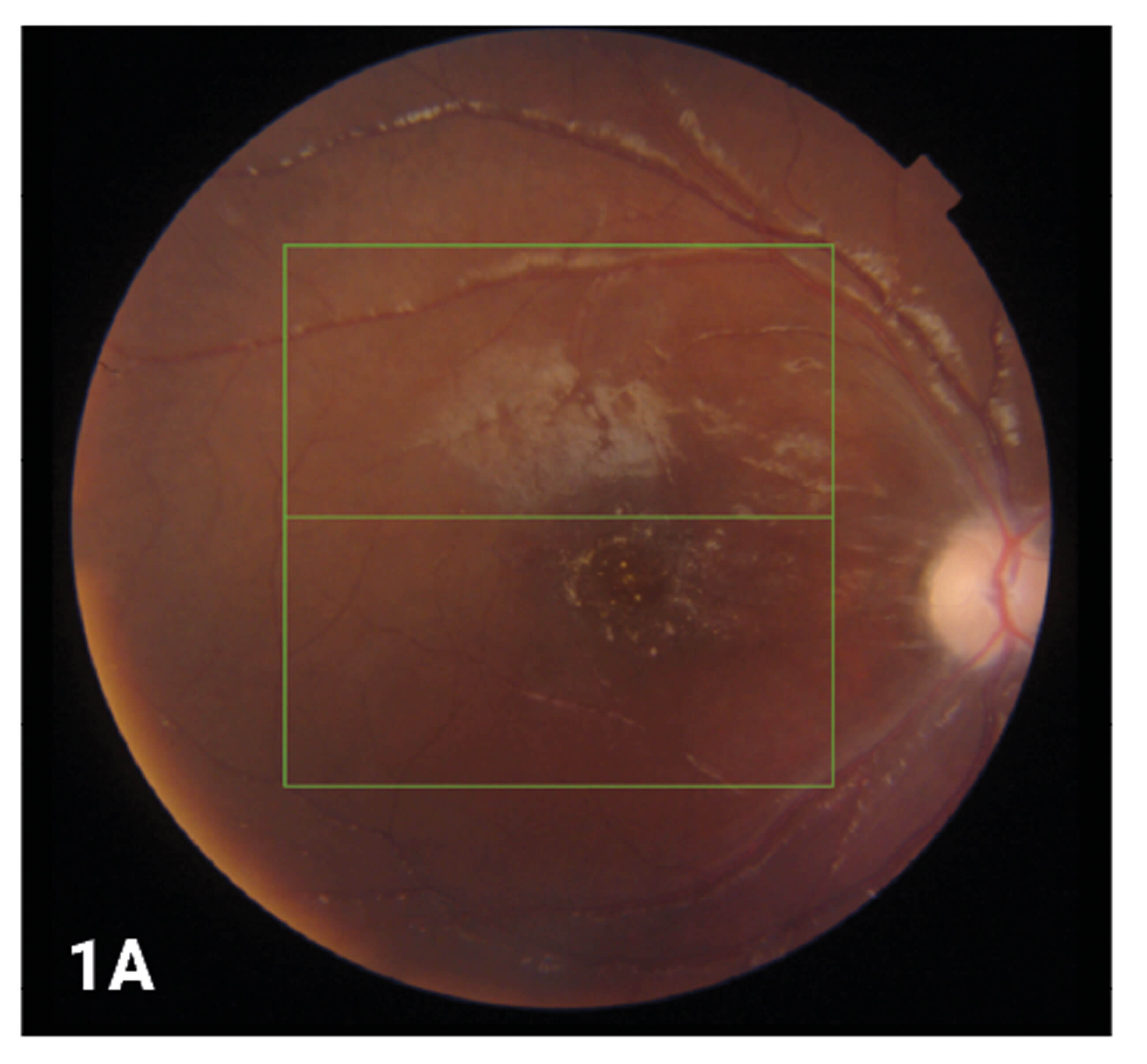 Figure 1: The a) fundus image of the right eye postoperatively along with