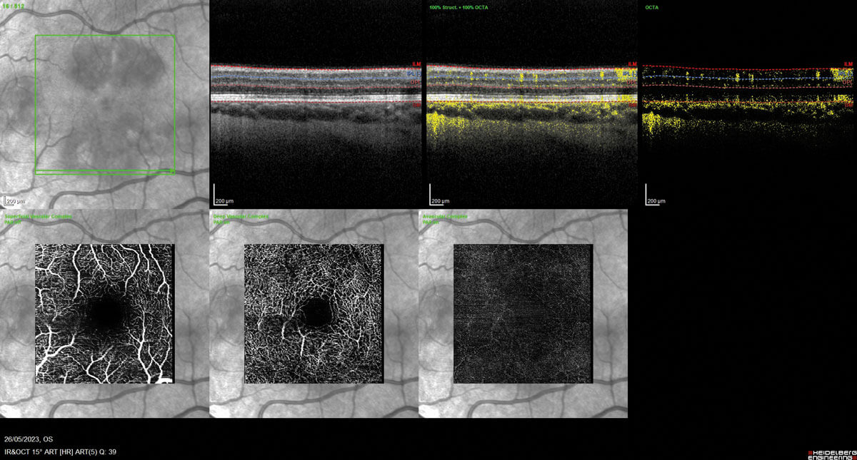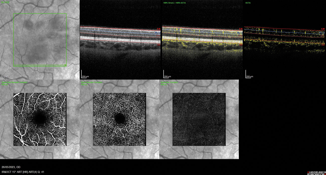 Figures 2a and 2b: OCT angiography left eye (2a - top) and right eye (2b - bottom).