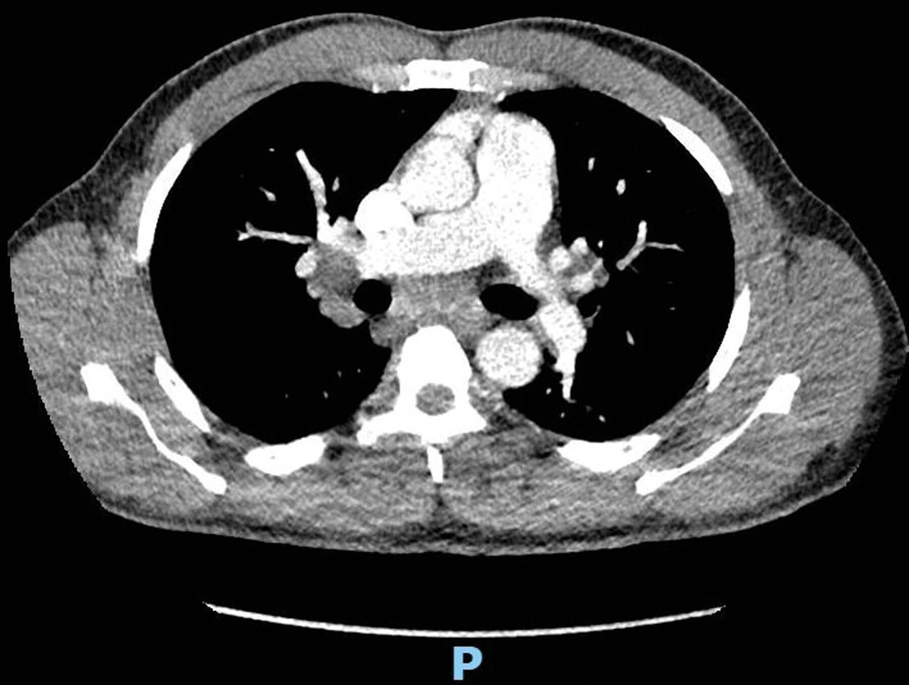 Figure 2: CT Thorax showing bilateral hilar lymphadenopathy.