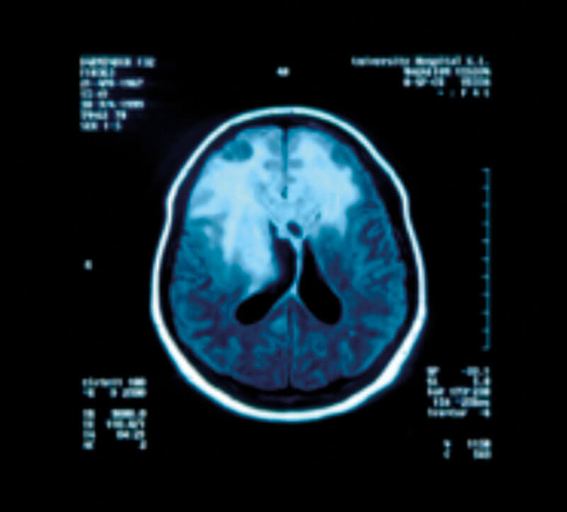 Figure 4: Brain MRI with contrast showing a large infiltrating frontal