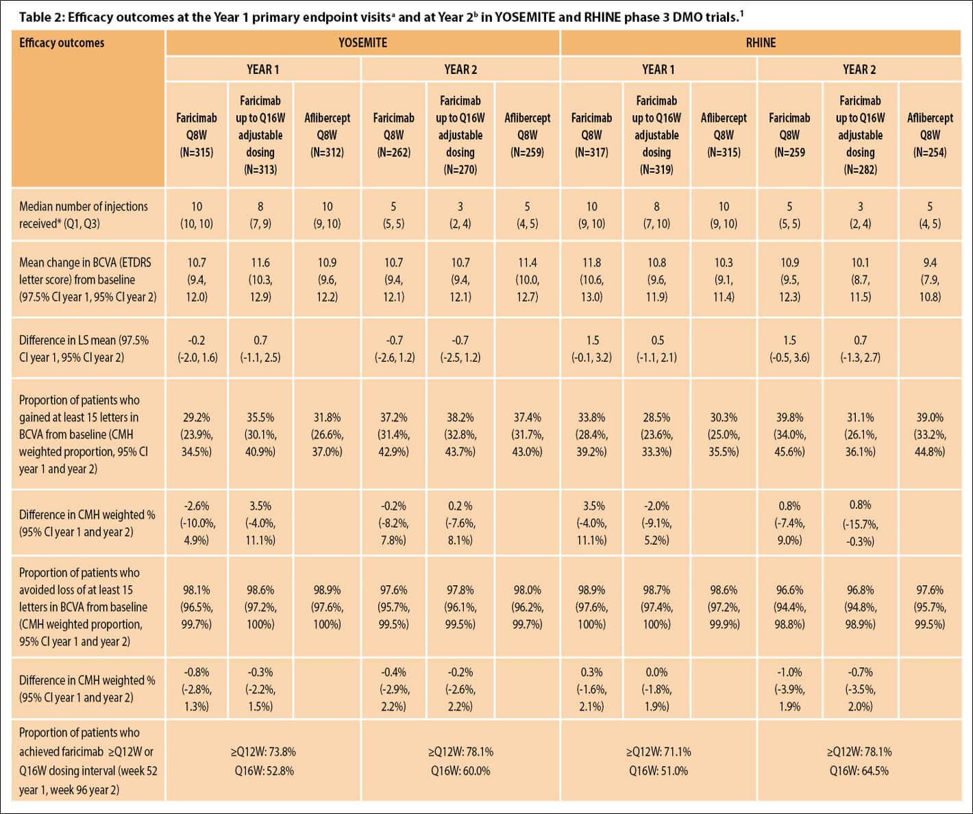 • Two-year results from phase 3 YOSEMITE and RHINE trials of faricimab for DMO