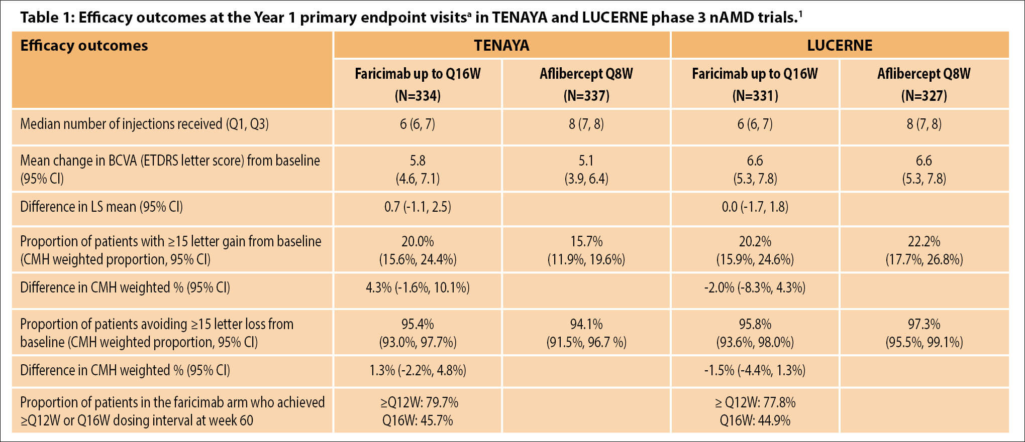 • One-year results from phase 3 TENAYA and LUCERNE trials of faricimab for nAMD