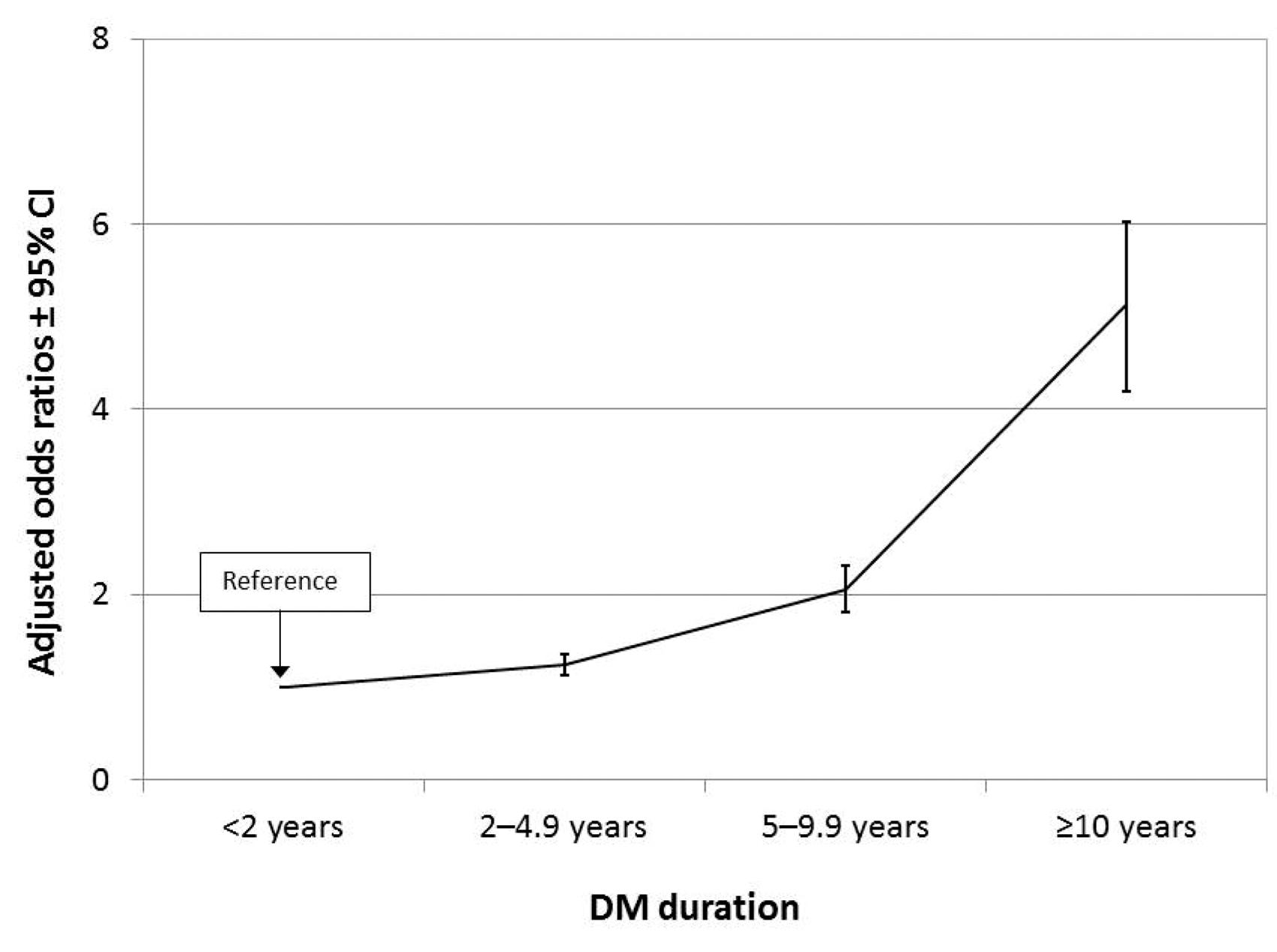 Figure 1: The risk of cataract increases with DM duration.