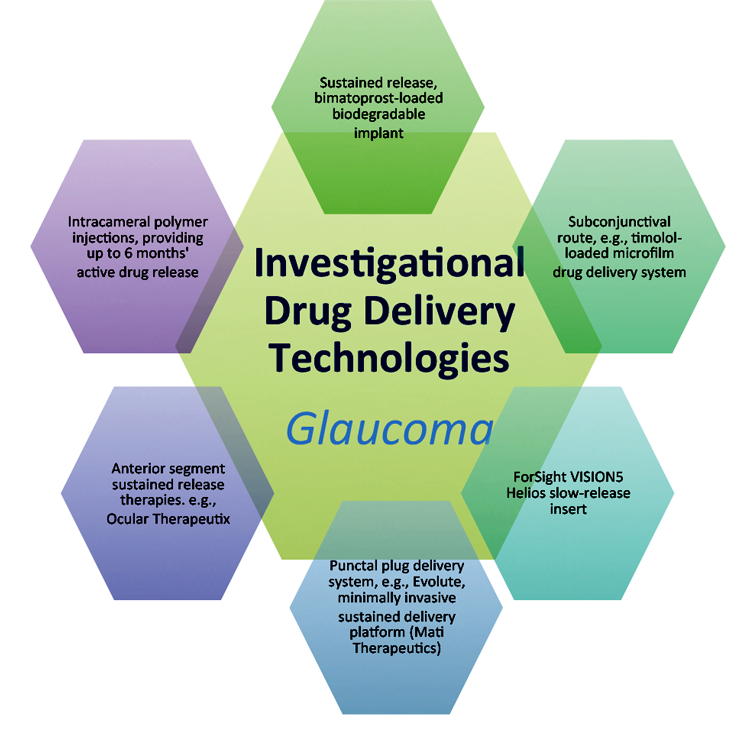 Delivery via the subconjunctival route is being tested, for example using a timolol-loaded microfilm drug delivery system. Concerns remain over patient acceptance and overall ocular safety, for example with regard to nasolacrimal duct changes with chronic use of drug eluting devices.