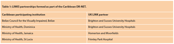 The VISION 2020 LINKS Programme has been running since 2004, with a focus on improving the quality and quantity of eye care training in low-income countries [1]. In 2014, the Diabetic Retinopathy Network (DR-NET) was established [2]. This is a network of 17 VISION 2020 LINKS in 10 countries, all working on reducing visual loss from the growing burden of diabetic retinopathy. In 2014 the first VISION 2020 LINK in the Caribbean was established in Jamaica. The University Hospital of the West Indies was linked with Moorfields Eye Hospital and the Homerton Hospital in London, UK [3]. Financial support for the DR-NET comes from the Queen Elizabeth Diamond Jubilee Trust [4].
