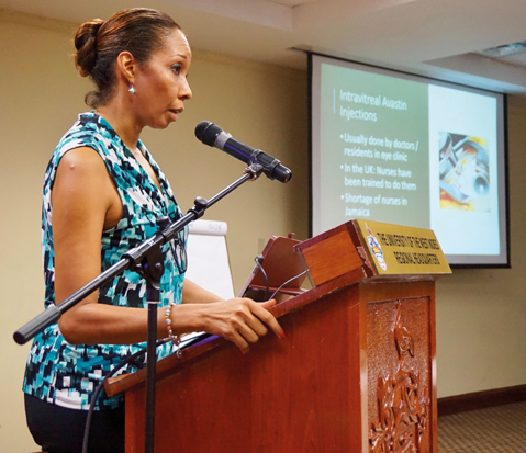 Professor Geeta Menon gave a session on the successful screener-grader training that has been run in Zambia through the Kitwe-Frimley LINK, providing an opportunity to share learning from the DR-NET. Covering treatment options for diabetic retinopathy, presentations were given by Angela Mattis, Jeannine Imoru, Zubin Saihan and Mike Eckstein, covering laser treatment, anti-VEGF and surgery. These presentations also considered which of these treatment options was the most suitable to the context within the Caribbean in terms of resources and ability to deliver. Lizette Mowatt rounded up the plenary sessions by providing an overview of the training options for treatment available in the region.