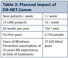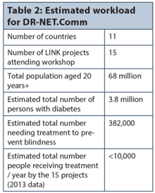 Cumulatively, the DR-NET.Comm serves a population of 3.8 million people with diabetes, of whom an estimated 382,000 require treatment for visually-threatening diabetic retinopathy. At present, less than 10,000 individuals are receiving treatment each year in the catchment areas. During the week a commitment was made by the 15 LINKS teams to increase their treatment outputs by at least one patient per week. Over the course of the five-year project the 15 teams will treat at least 3,750 more patients. Assuming an average of ten years life-expectancy at the time of treatment, the DR-NET.Comm will prevent 37,500 years of blindness.