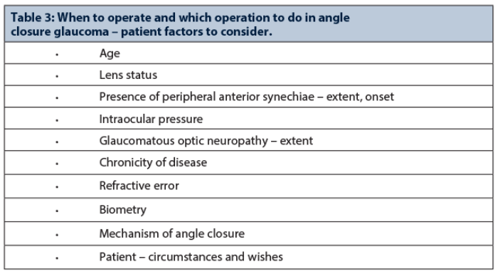 Case series results show clear lens extraction led to a significant reduction in IOP and a reduced need for ocular hypotensive medication in eyes with primary angle closure and persistently raised IOP after laser iridotomy [15]. Three-year follow-up results from the effectiveness of early lens extraction with intraocular lens (IOL) implantation for the treatment of primary angle-closure glaucoma (EAGLE) study are expected to be published soon, explained Paul Foster. A distinguishing feature of this clinical trial is a multidimensional primary outcome measure: patient-reported outcomes (EQ-5D), IOP, and incremental cost per quality adjusted life year (QALY) gained. Practitioners are increasingly moving toward evidence-based management of primary angle-closure glaucoma (PACG), although questions remain over the optimal approach for early stage angle closure glaucoma and also in very small eyes.