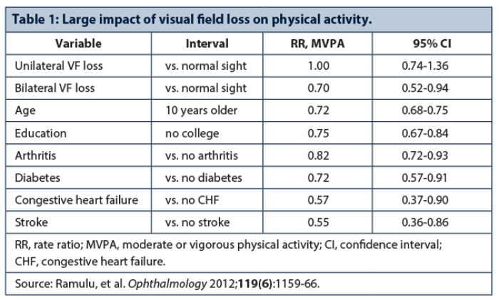 Pradeep Ramulu, John Hopkins Wilmer Eye Institute, USA, emphasised the substantial impact of glaucoma on a patient’s daily activity and behaviours (Table 1). Reading speed decreases over time in glaucoma, glaucoma severity is associated with driving cessation, with less driving reducing life space, and individuals with glaucoma are more home bound than individuals with normal vision [3]. Falls and injuries from falls are disturbingly common and are related to glaucoma severity. Fear of falling in individuals with vision loss may be closely associated with restricted physical activity. Of note, vigorous physical activity may help prevent sight loss or reduce glaucoma risk - no cases of glaucoma were seen over eight years in 781 men who ran a 10-km race in under 34 minutes [4].