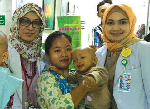 In Makassar a symposium with international speaker Dr Andrew Blaikie from St Andrews and the head of paediatrics, Professor Dasril, led to the first steps in non-surgical management of Rb. Treatment permissions were granted in December 2013 - agreement to commence chemotherapy without tissue diagnosis, based solely on the clinical finding of calcification on ultrasound and fundoscopy. Around the same time in Cicendo Hospital in Bandung, Java, two clinicians (Dr Primawita Oktarima and Dr Anne Susanty) were sent for an extended fellowship training with Ashwin Reddy and the late Judith Kingston in London, to gain knowledge and skills.
