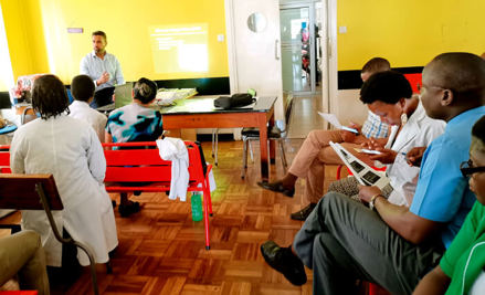 Zishan Naeem, Specialist Orthoptist in the retinoblastoma service at the Royal London, updated the staff on visual acuity testing. He also assisted in refining the rehabilitation plan for children with monocular vision that was created by the local team.