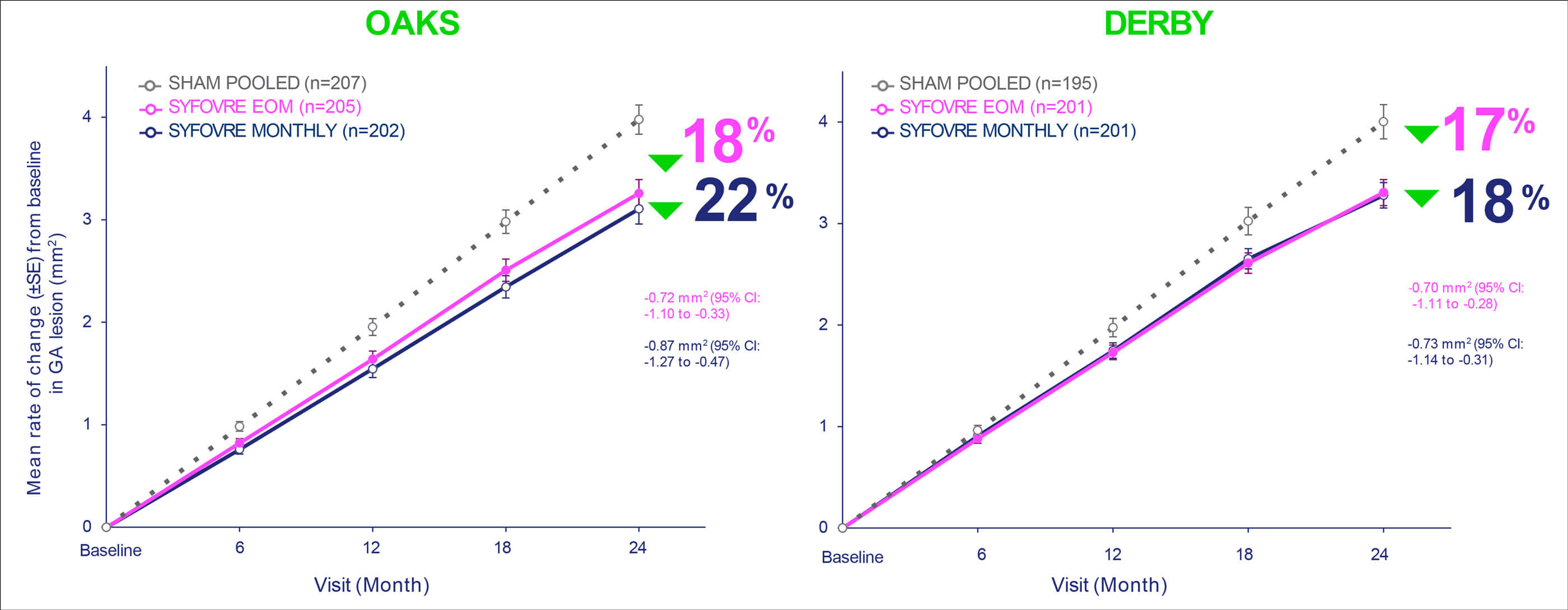 Phase 3 OAKS and DERBY clinical trial results: reduction in mean rate of GA lesion growth observed in both studies