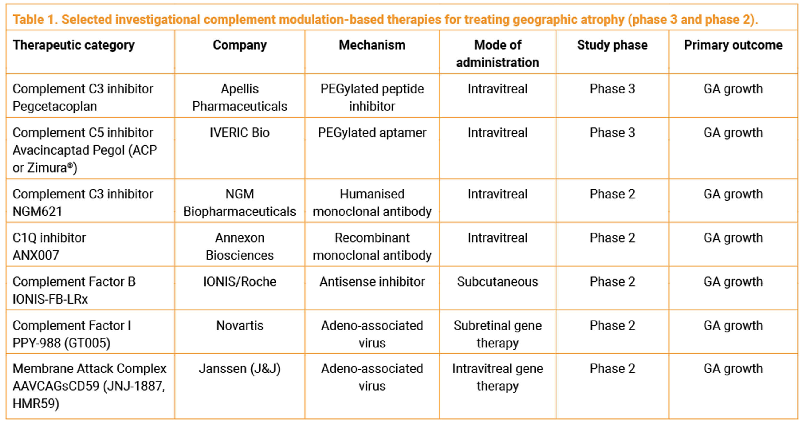 Several other companies are actively developing complement modulation-based product candidates for the treatment of GA (Table 1).
