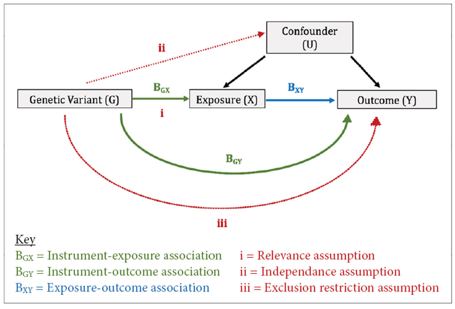 In a seminal paper in 2003, Smith and Shah, inspired by allogenic sibling bone marrow transplantation studies, proposed a novel epidemiological approach that came to be known as ‘Mendelian randomisation’ (MR) [4]. MR uses genetic variants identified from large-scale genome-wide association studies (GWAS) within an instrumental variable (IV) framework to make inferences about the causal effect of an exposure on an outcome (Figure 1).
