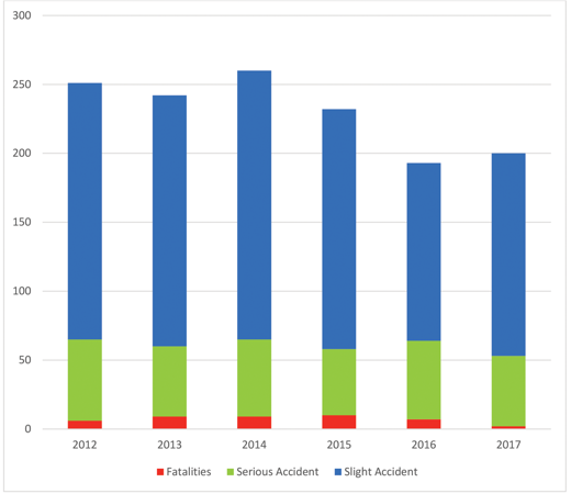 13. Department of Transport, Contributory factors for accidents, vehicles and casualties, RAS50001: 2012 - 2017 UK Government, London.
