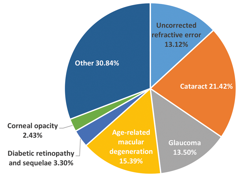 (VA <3/60 in the better eye) by cause among adults ≥50 years [1].