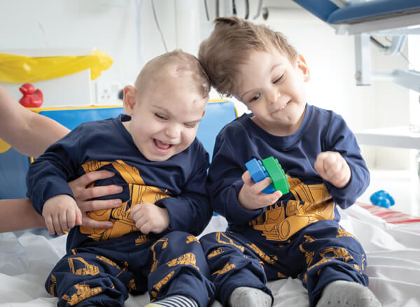 The surgical treatment was supported by detailed neuroimaging, 3D modelling and virtual reality simulation. Over 100 professionals across more than 15 disciplines contributed to Yigit and Derman’s treatment. After five weeks of tissue expansion, their three surgical separation procedures totalled 36 hours of surgery and the entire surgical process took seven weeks - quicker than the previous three sets separated at GOSH. This minimised the risk of complications due to a potentially prolonged hospital stay. Following separation, right brow positions grossly improved in both twins.