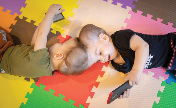 Figure 5: Twins post-separation surgery, pictured undergoing physiotherapy.