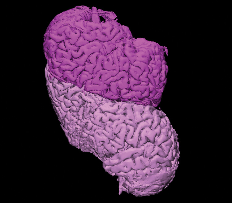Figure 2: Three-dimensional reconstruction of the brains of the craniopagus twins.
