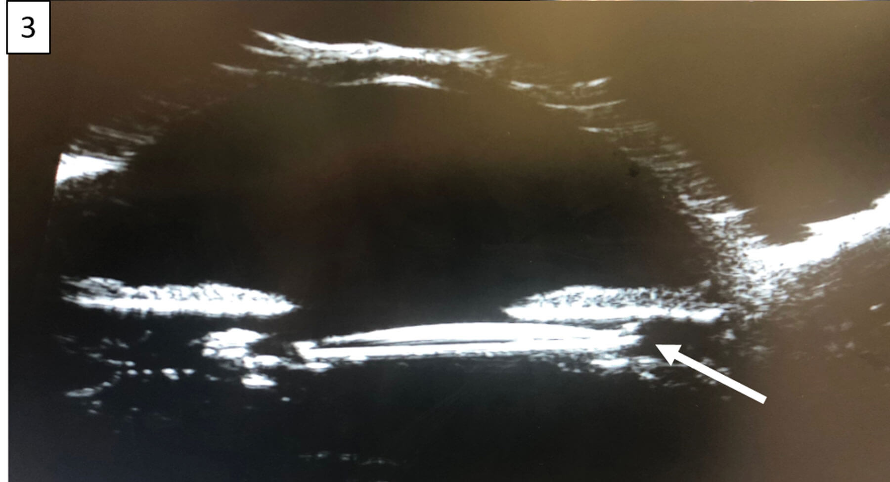 Figure 3: Ultrasound biomicroscopy demonstrated IOL decentration