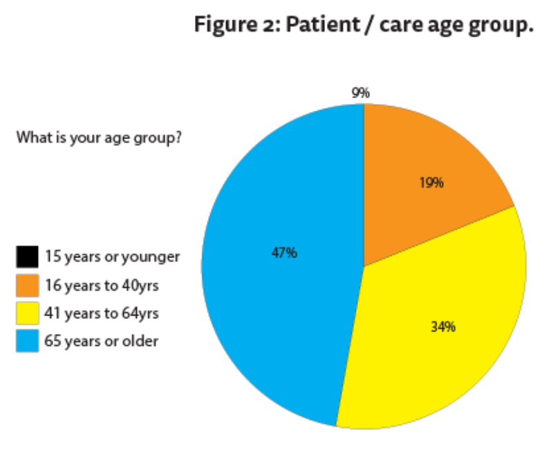 Patients / carers were invited to provide feedback about the support via a questionnaire (Table 3 and Figure 2). Data has so far been collected from five sites, with 95 feedback forms completed. All patients / carers (100%, n=95) expressed that the eye drop compliance support was useful to help improve the way they put in eye drops, and felt more confident in putting in eye drops than they did before. Almost half of those providing feedback were over 65 years of age (47%, n=45 Figure 2).