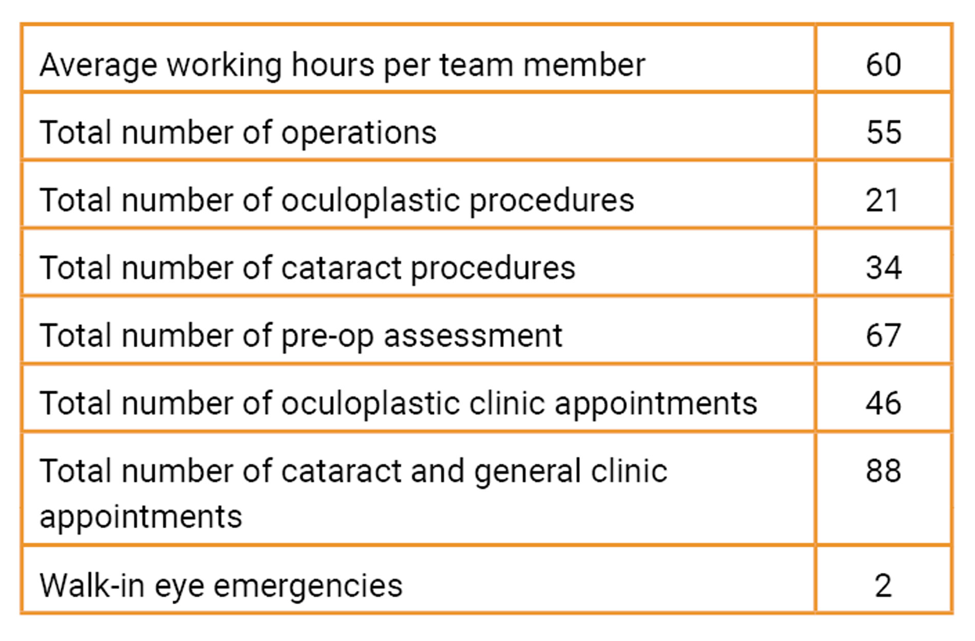 Productivity for 2024 during the five clinical days were: