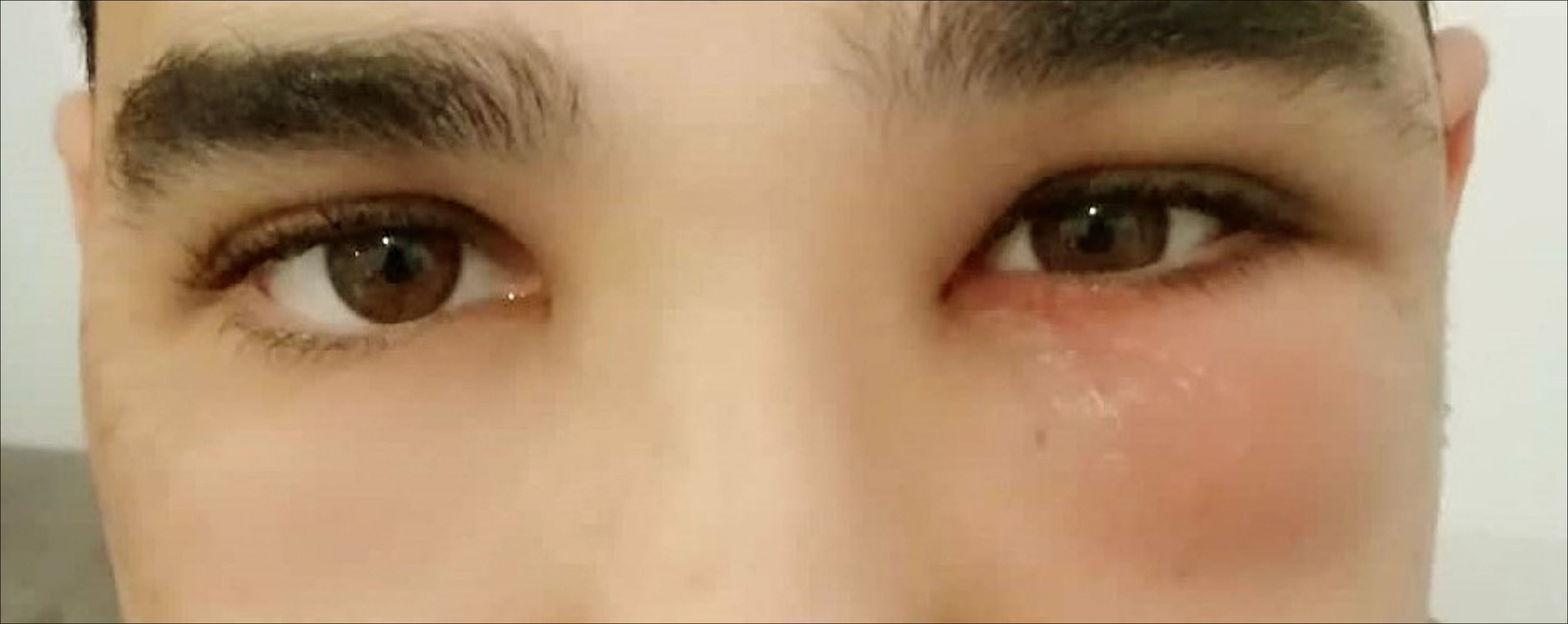 Figure 1: A 30-year-old male with a subacute onset of periorbital painless non-pitting subcutaneous oedema.