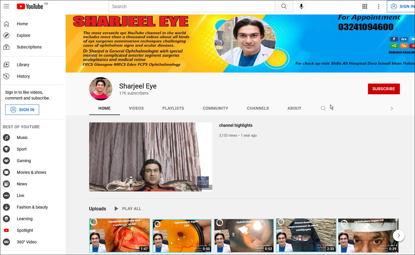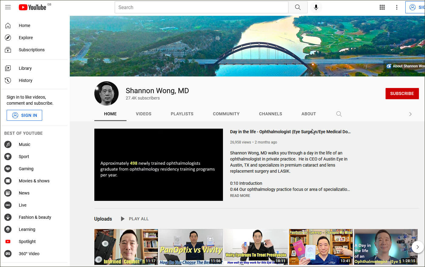 Shannon Wong, MD, is an ophthalmologist in Austin, Texas, specialising in LASIK, cataract and corneal surgeries. His channel features videos for both patients and ophthalmologists. A wide range of topics are covered, including videos of eye surgeries, clinical ophthalmology, patient education, pre- and post-op instructions, technology reviews, patient experiences, other aspects of medicine and ophthalmology such as leadership and business, and unusual eye surgical cases. He also shares his personal experiences in medicine and ophthalmology in the form of vlogs and podcasts. I found the videos of complex surgeries and rare eye surgical cases particularly interesting.