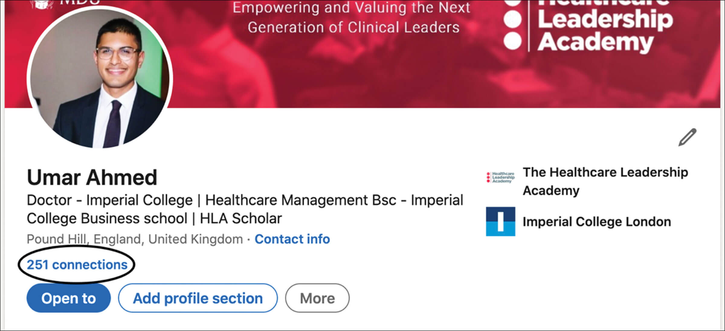 As you can see, my profile has over 251 connections, hence a large network I can interact with.