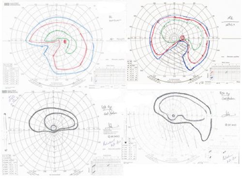 Figure 4: Goldmann visual fields in cases of NA-AION showing typical inferior defects.