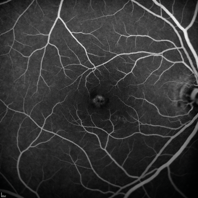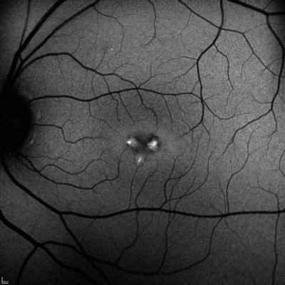 Hereditary fundus dystrophies like Stargardt’s or the spectrum of pattern dystrophy of the retinal pigment epithelium are unlikely to act as differential diagnoses because of the differing clinical presentation and the late onset in our patient. This leaves a possible toxic cause. Quetiapin has not yet been reported to have ocular side-effects and Pregabalin, although sometimes causing visual field defects or diplopia, has not been mentioned in the context of maculopathies [1].