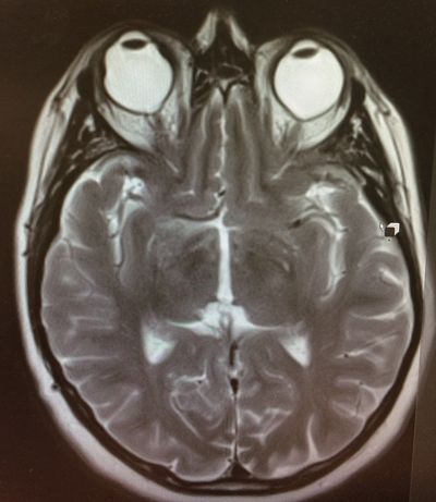 Figure 2: T2 weighted MRI brain and orbits scan in the transverse plane