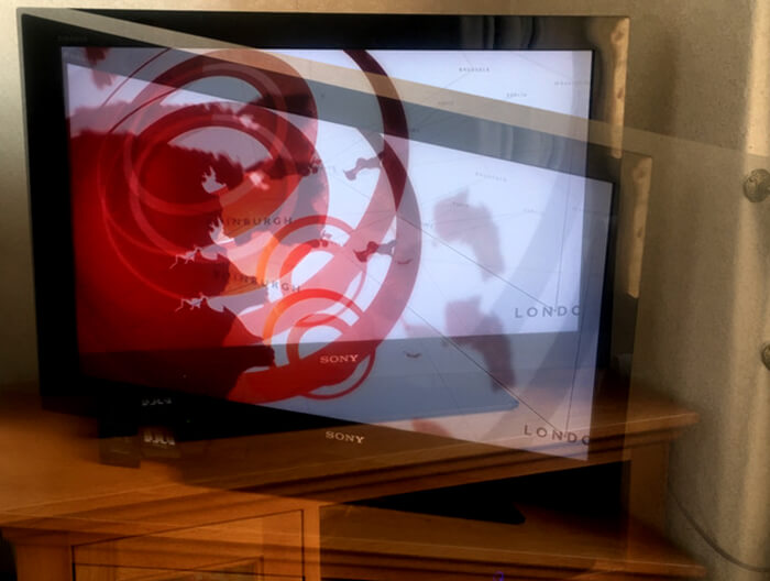 Figure 1: Photoshoped image illustrating how a patient with 4th nerve palsy sees his television