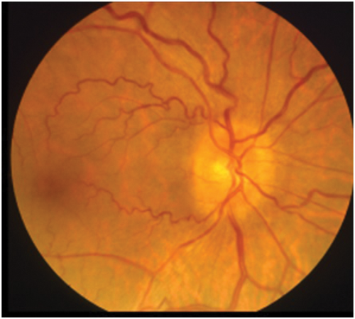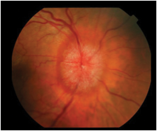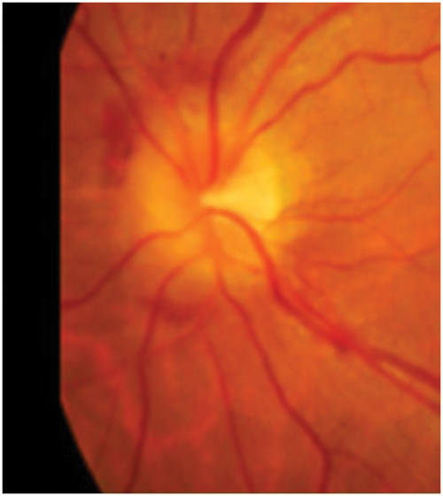 Figure 2: Optic disc photograph showing blurring of all disc margins