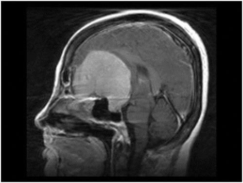Figure 6: MRI of brain showing huge olfactory groove meningioma.