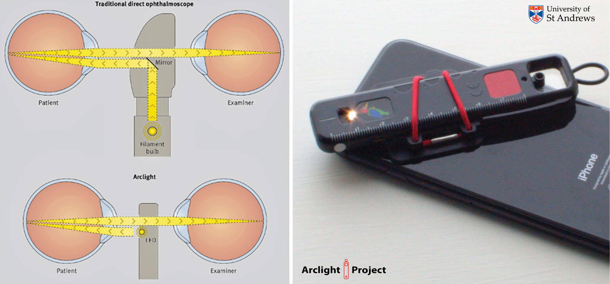 The Arclight Project is a mix of frugal design, manufacturing, distribution, teaching, research, and advocacy, all wrapped up in a social enterprise based at the University of St Andrews. The project is driven by the high burden of needless blindness (as well as deafness) in the poorer regions of the world, where access to training and diagnostic tools is least.
