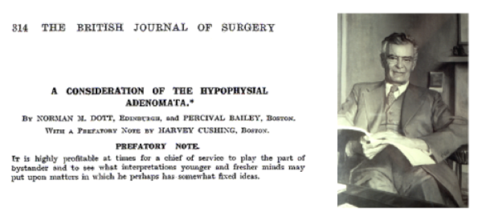 3. Dott NM, Bailey P. A Consideration of the Hypopyseal Adenomata. Brit J Surgery 1925;13:314-66.