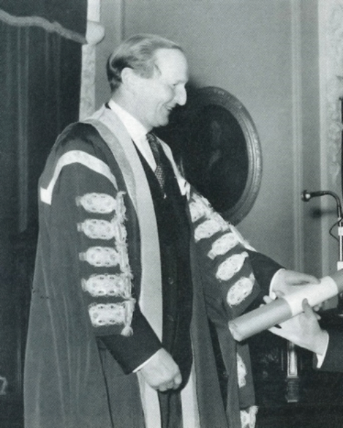 Figure 7: Photograph of Professor George Scott, President RCSEd at a diploma conferring ceremony. Taken from Figure 24 in A Fortunate Apprentice by John F Shaw. The Memoir Club; 2010.
