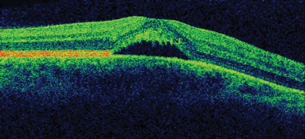 The patient was placed onto different therapeutic options during the follow-up showing no clinical response, until he underwent a definitive treatment which proved to be effective. OCT follow-up can be observed in Figure 3.