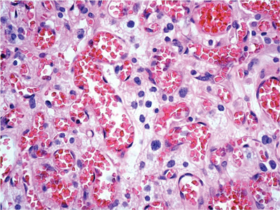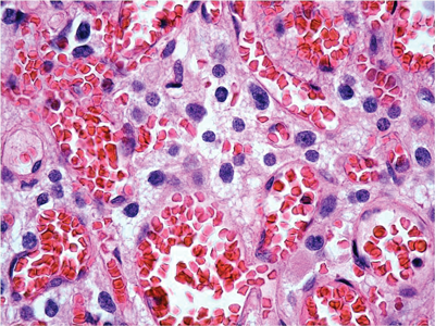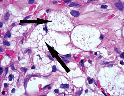 2. Foamy stromal cells between the vascular element.