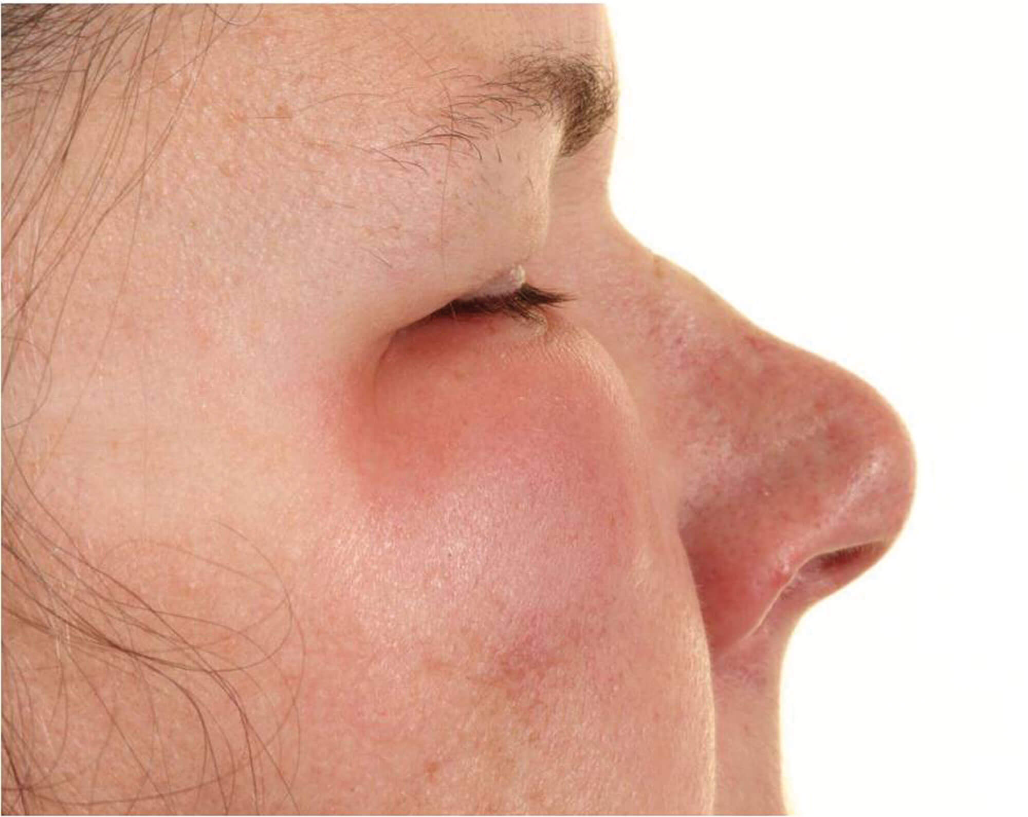 On examination at the recent visit, her visual acuity was counting fingers on the right eye improving to 3/60 on pin hole measurement and 6/6 on the left eye. There was right periocular swelling with a tense, swollen and oedematous right lower lid, which was tender to touch (Figure 1 and 2). The conjunctiva on the right side exhibited papillae and follicles and there was a diffuse chemosis and some mild scleral inflammation. In the right cornea there was only punctate staining with fluorescein. Anterior chamber was quiet on examination with an intraocular pressure of 14mmHg. Fundoscopy and other eye examinations were normal.