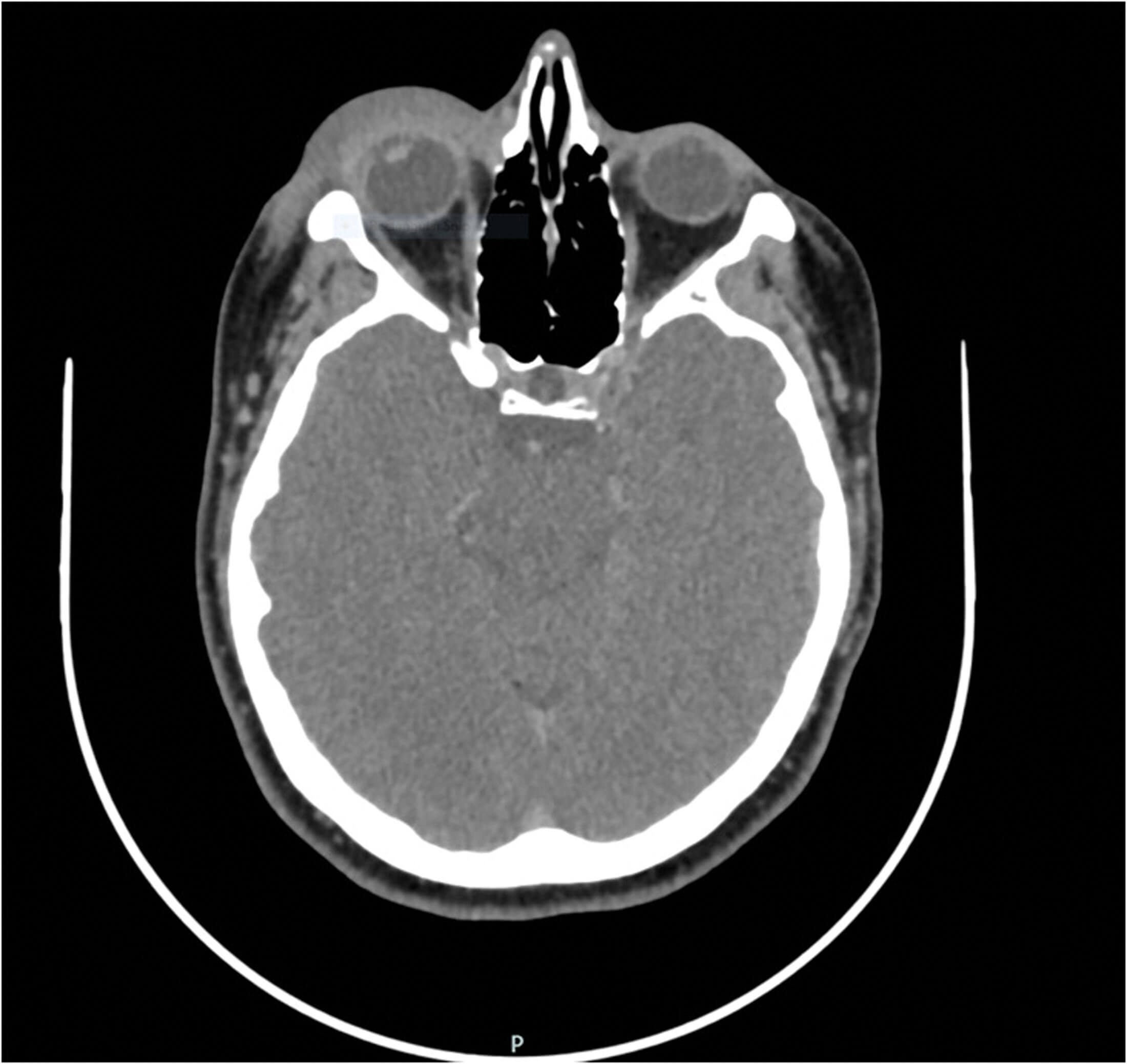 Figure 3: Right eye CT scan image showing periorbital soft tissue swelling mainly.