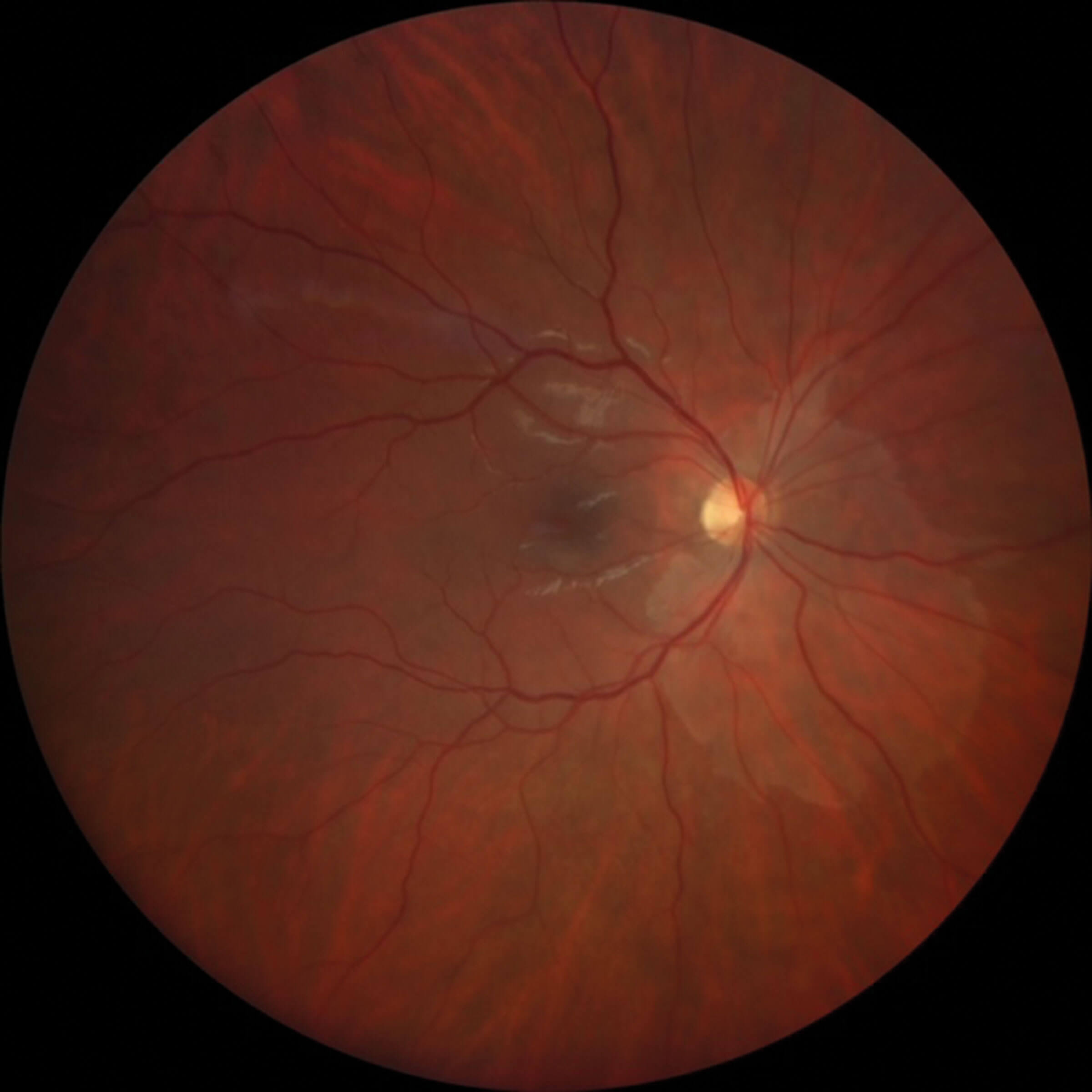 Figure 1: Coloured fundus photo of the right eye, showing whitening