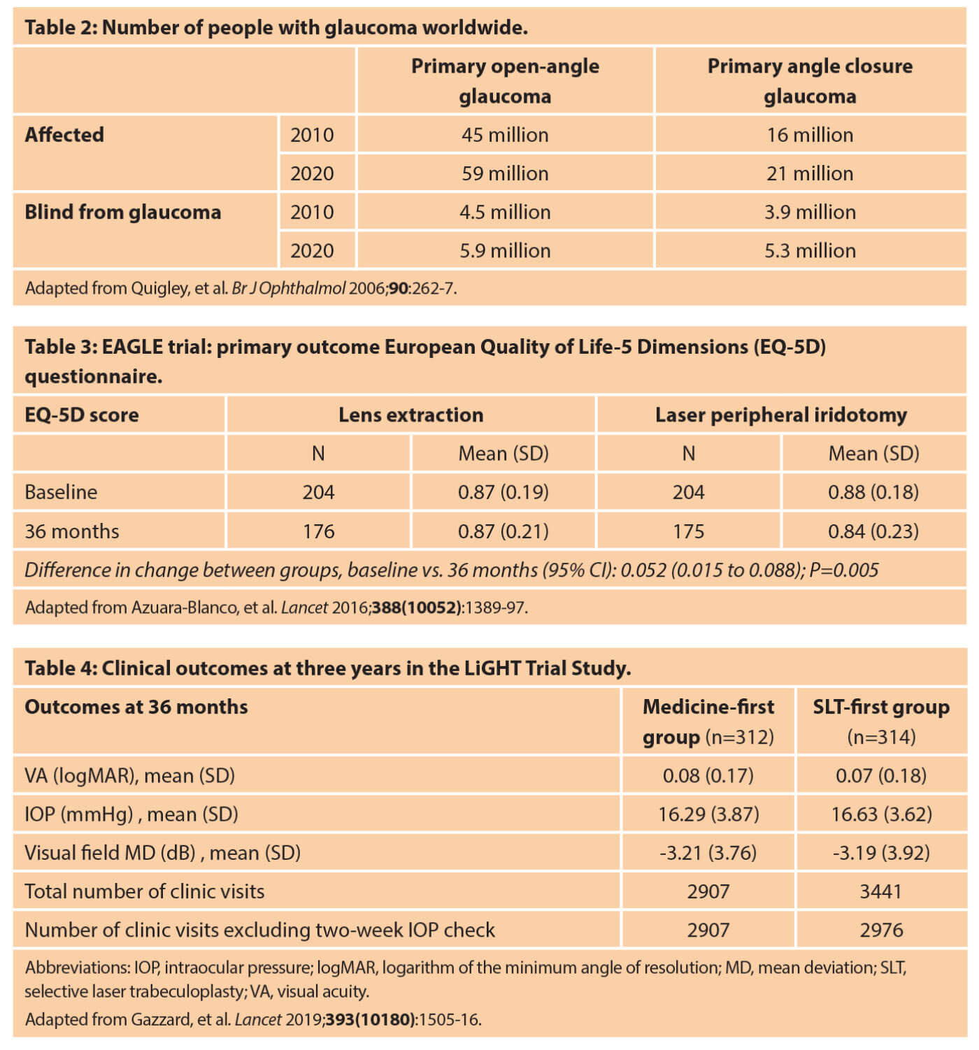 20. Azuara-Blanco A, Burr J, Ramsay C, et al; EAGLE study group. Effectiveness of early lens extraction for the treatment of primary angle-closure glaucoma (EAGLE): a randomised controlled trial. Lancet 2016;388(10052):1389-97.