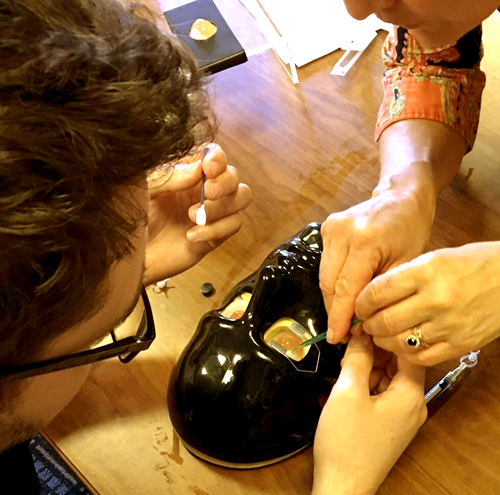 This is undoubtedly the most popular part of the training day and provides a valuable opportunity for trainees to practise injection site identification, angle of needle insertion, and speed of injection. The artificial eyes are designed to have a similar resistance to sclera so that feedback felt is close to the natural feedback experienced when the needle is inserted into a real globe.