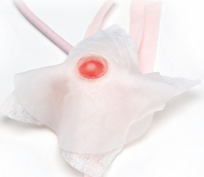 b) The advanced eyes (Figure 2) have the same scleral shell and rectus muscles, but they also have a layer of conjunctiva, with similar elastic properties of human conjunctiva, a layer of Tenon’s capsule and a superior or an inferior oblique muscle. The superior oblique tendon is made from a thin stretchy material that has a wide insertion under the superior rectus as in life. The inferior oblique tendon is more cord-like as it is in life (Figure 3). Both eyes sit in a mounting cup, which is placed in a model head.